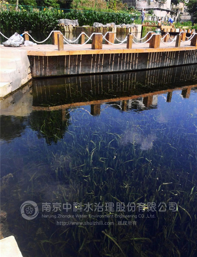 濕地處理系統具有緩沖容量大、生態效果好、工藝簡單、投資少、運行費用低等特點。濕地位于清水型生態系統的末端,主要構建凈化能力強、生命力旺盛的水生植物,并結合生物濾池的高效過濾對入湖段河水中的COD、總磷、氨氮以及其他污染物質進行吸收和降解。