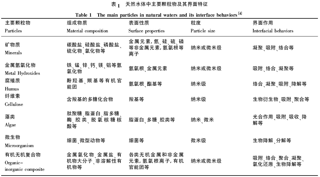 科學(xué)家等對(duì)天然水體中主要顆粒物及其界面特征進(jìn)行了總結(jié):